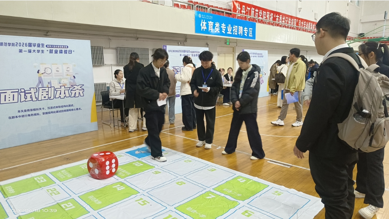 学校在体育馆内同时举办第二届大学生“就业体验日”活动。体验活动设置了“意识唤醒、逐梦探索、能力成长、实战达成、赋能未来”等五大板块内容,包含职业测评、简历门诊、模拟面试、职场情景游戏等10项特色游戏活动。并为每名参与学生形成专属体验分析报告。参与就业体验的学生们纷纷表示,学校举办的“就业体验日”活动使同学们通过参与打卡,明晰了职业定位、发现了自身不足,进而更精准地规划就业方向,为将来就业打下坚实基础。